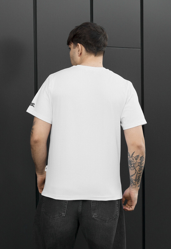 Стильная белая футболка — идеальный выбор для повседневного гардероба. Изготовлена из 90% хлопка и 10% эластана, она обеспечивает комфорт, мягкость и эластичность. Классический крой и круглый вырез гарантируют удобную посадку, а качественный принт на рукавах придает уникальный характер образу. Бирка с фирменным логотипом вшита в боковой шов. Подходит для любого сезона и легко сочетается с разными стилями одежды.