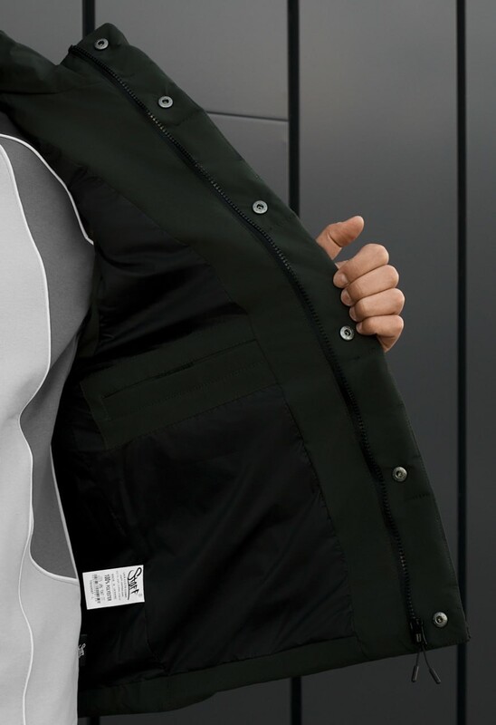 - тракторный замок-молния снаружи прикрыт ветрозащитной планкой на кнопках;
