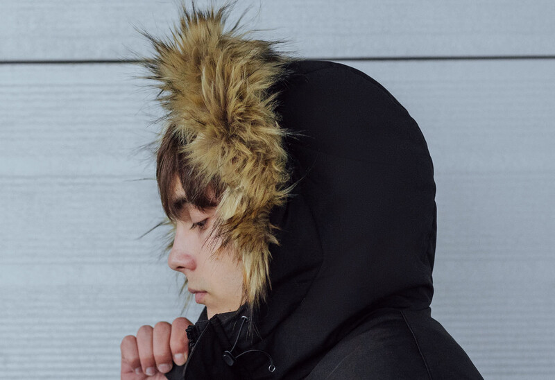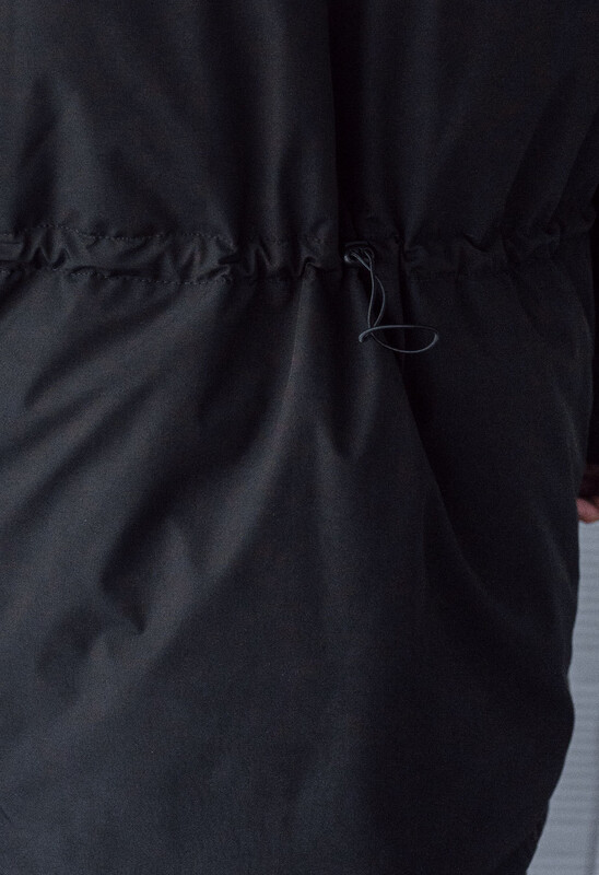 - высокая горловина, переходящая в капюшон (ширина капюшона регулируется шнуром с пластиковыми фиксаторами);