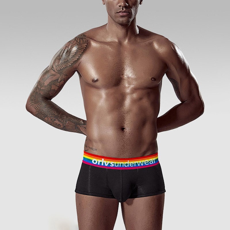 • Мужские боксеры ORLVS черные с радужной резинкой