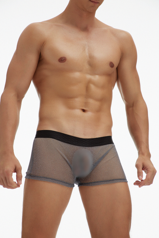 Серая версия трусов Ciokicx делает прозрачность более утончённой и визуально сложной. Полупрозрачная сетка с люрексом создаёт мягкий эффект дымки, через которую тело выглядит особенно выразительно. Серый цвет смягчает контраст, добавляя образу глубину и ощущение продуманного стиля. Такая прозрачность работает не на резкость, а на визуальное притяжение.