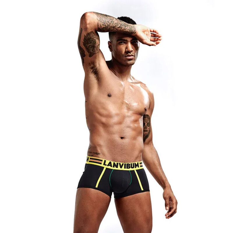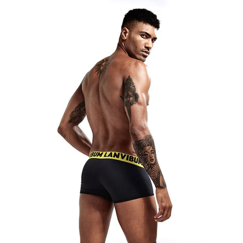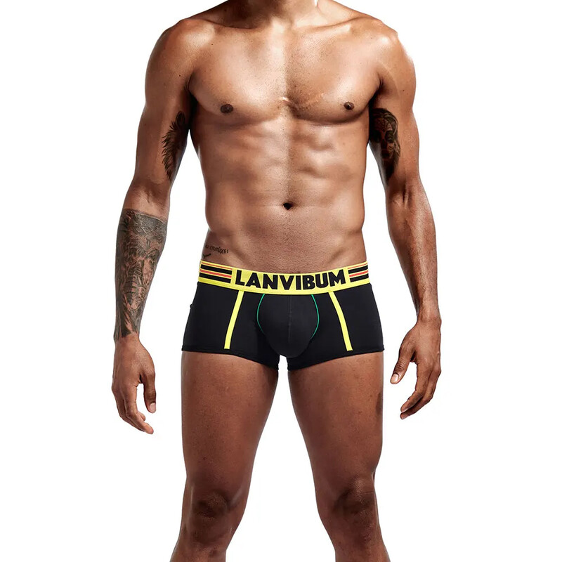 • Мужские черные трусы с желтой резинкой Lanvibum