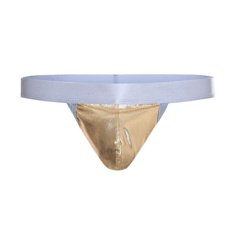 Сексуальные трусы для мужчин D.M. черно-белые стринги с эрекционным кольцом (O-ring)