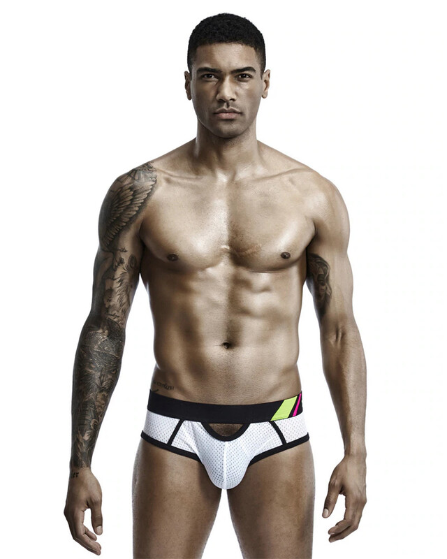 Фото - Мужские трусы танга Pump белые с яркой резинкой - Men box