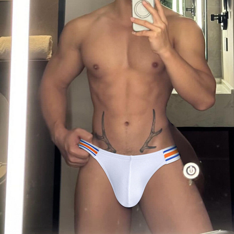 Мужские трусы танга ORLVS белые с яркой резинкой