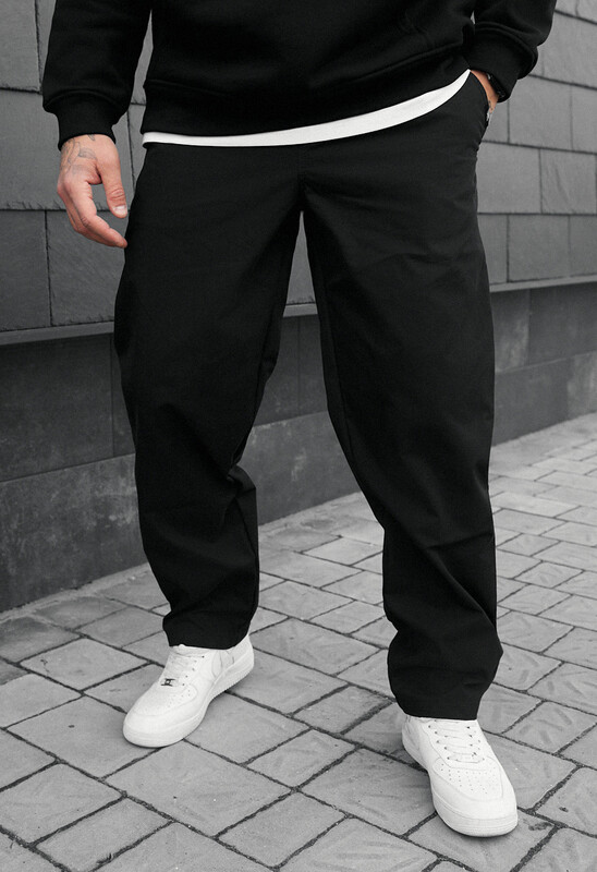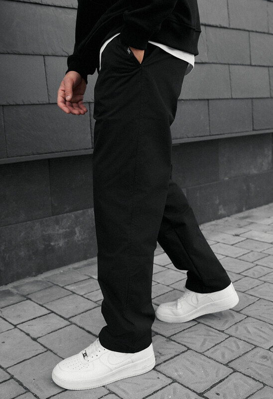 Черные брюки из сочетания 67% хлопка и 33% полиэстера – комфортный выбор для весенне-летнего сезона. Легкая и дышащая ткань обеспечивает удобство в повседневной носке и хорошо держит форму. Классический крой создает универсальный силуэт, легко сочетающийся с любым стилем. Модель имеет два прорезных кармана спереди и один накладной сзади. Эластичный пояс со шнурком гарантирует идеальную посадку, а фирменная бирка подчеркивает качество изделия.