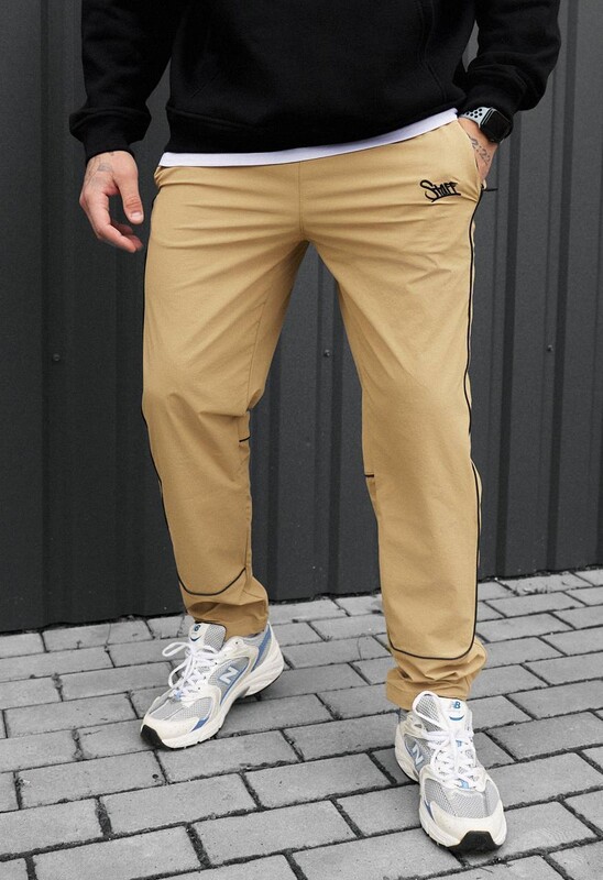 Бежевые брюки классического кроя — универсальная база для ежедневного стиля и активного ритма жизни. Выполненные из сочетания полиэстера и эластана они обеспечивают комфорт, эластичность и износостойкость. Оснащены эластичным поясом на шнурке, четырьмя удобными карманами и качественной вышивкой логотипа. Рефлективная окантовка придает современный вид и повышает видимость. Идеальный вариант для любого сезона.
