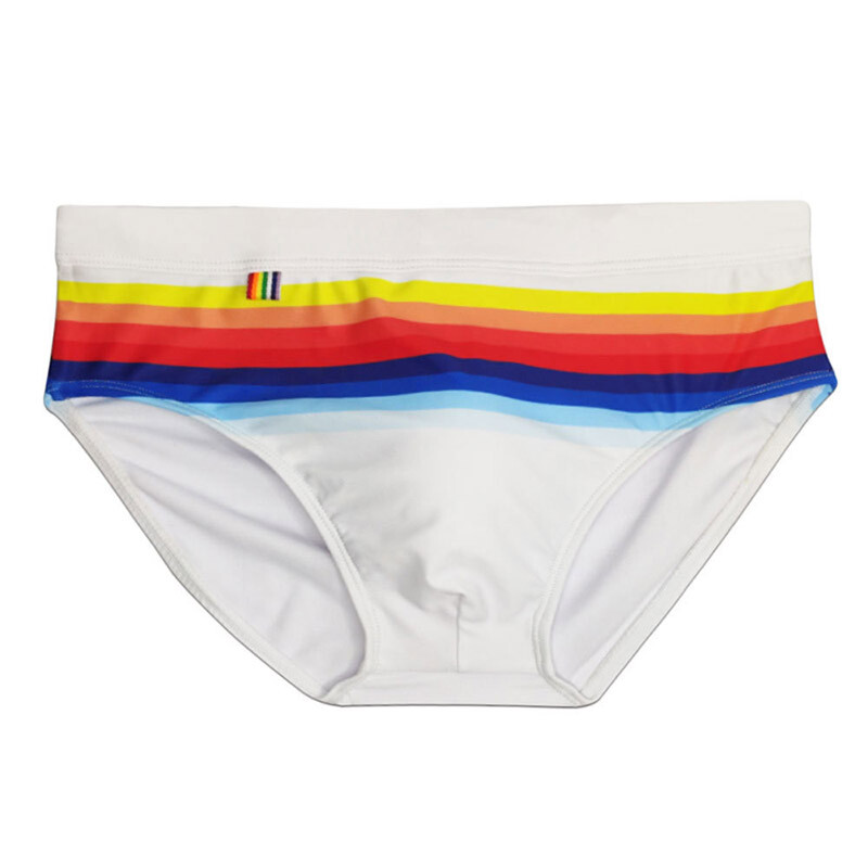 Фото - Мужские плавки UXH белого цвета с яркими полосами - Men box