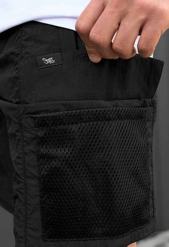 Легкие пляжные шорты классического кроя имеют шнурок для удобной регулировки посадки, а также карманы на молниях, обеспечивающие безопасность личных мелочей во время отдыха. Материал быстро сохнет и не теряет цвет. Дизайн дополняет накладной сетчатый карман с левой стороны.