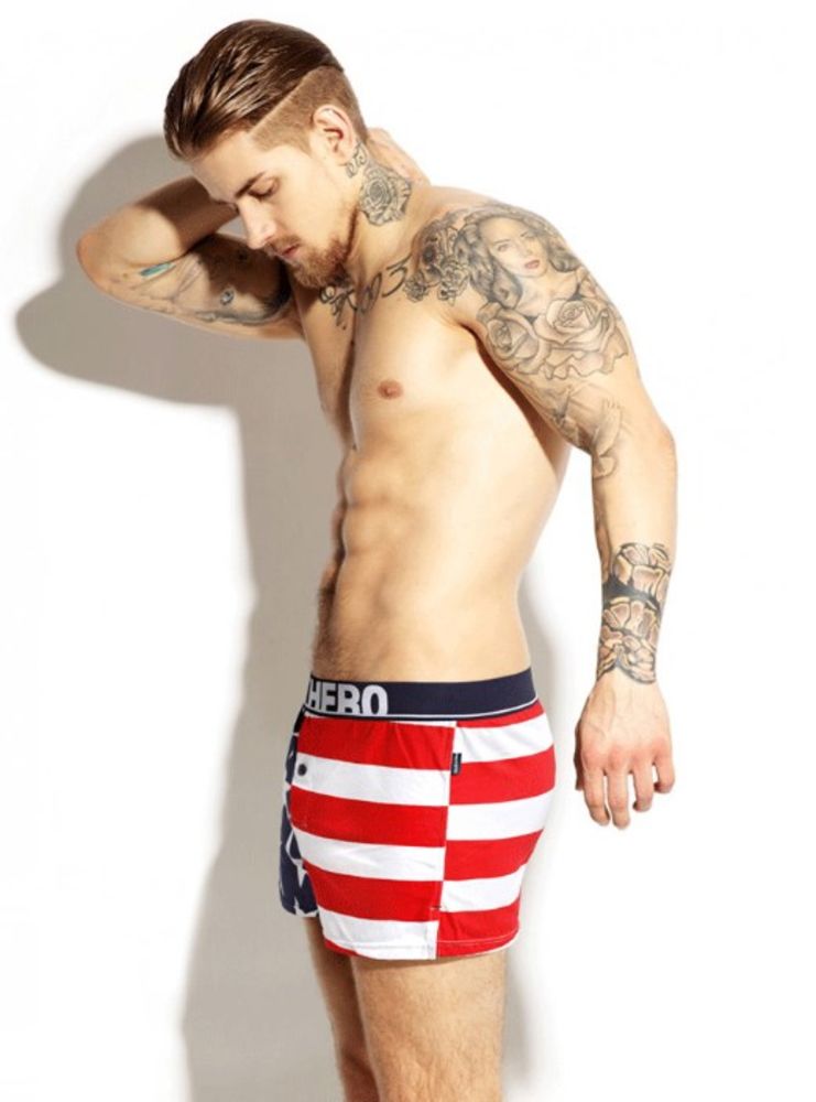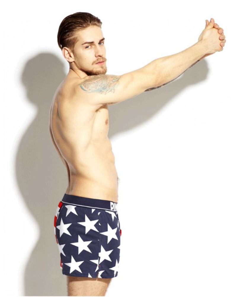 • Мужские семейные трусы с рисунком звезд и красными полосами Pink Hero