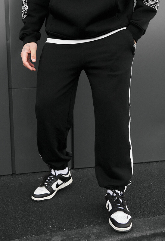 Черные спортивные штаны jogger из 100% европейского хлопка – универсальный вариант для ежедневного комфорта в любой сезон. Модель имеет эластичный пояс в рубчике со шнурком, что обеспечивает идеальную посадку. Два прорезных кармана на молнии спереди и один накладной сзади добавляют практичности. Манжеты снизу на резинке создают силуэт. Мягкая ткань приятна для тела и хорошо держит форму, а фирменная бирка подчеркивает оригинальность изделия.
