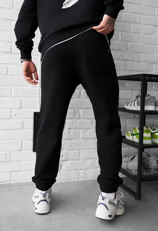 Стильные мужские спортивные штаны Staff в черном цвете с оригинальным художественным принтом – идеальный выбор для ежедневного комфорта. Изготовлены из 100% качественного европейского хлопка, обеспечивают мягкость и долговечность. Эластичный пояс на шнурке гарантирует удобную посадку, а манжеты фиксируют форму. Имеют функциональные карманы на молнии и задний накладной. Подходят для любого сезона и легко комбинируются со streetwear образами.