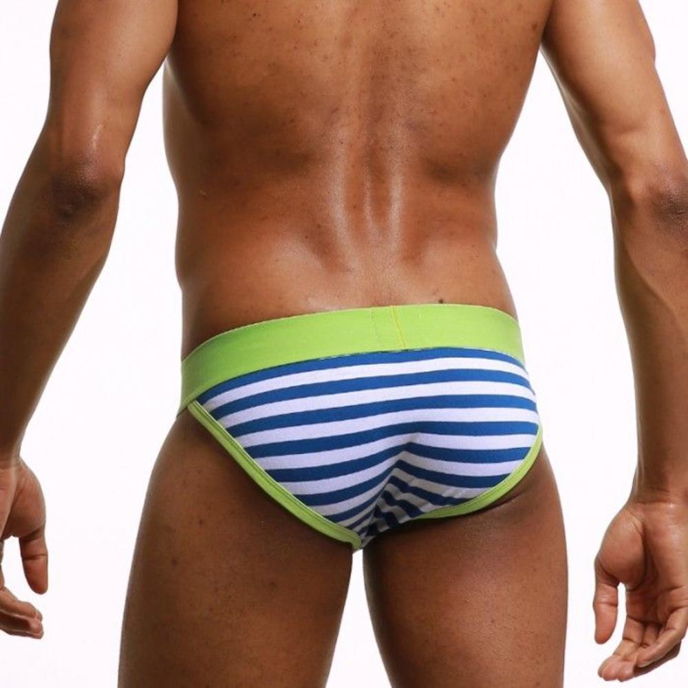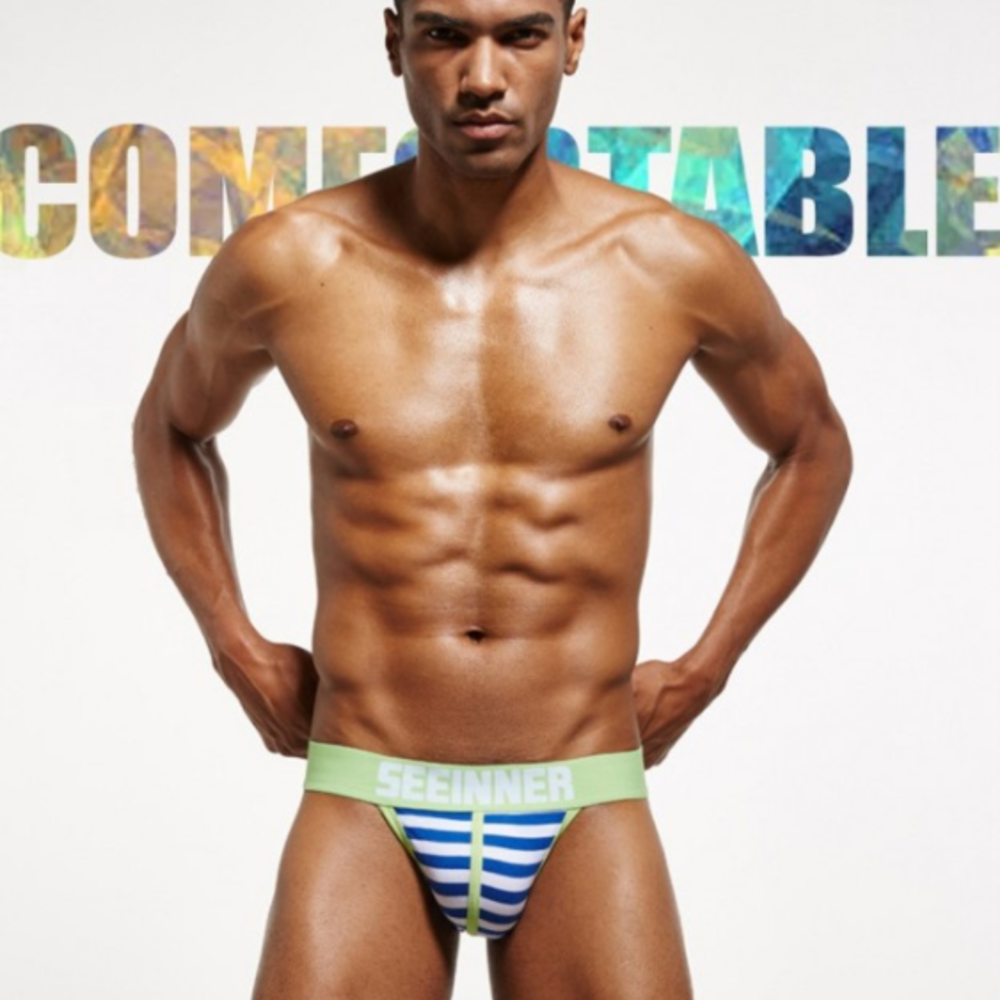 • Мужские танга Seeinner полосатые с салатовой резинкой