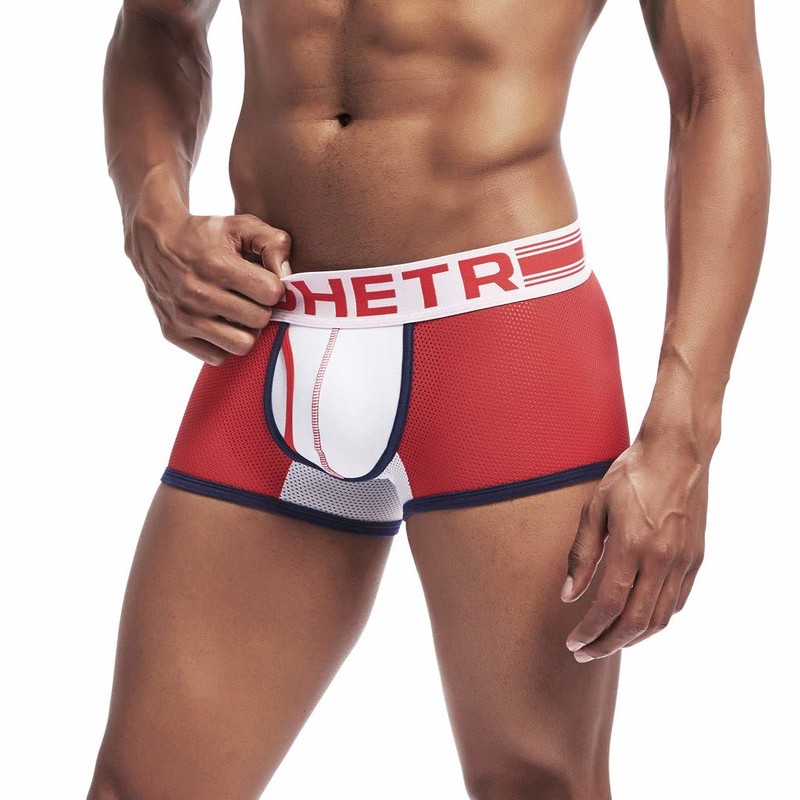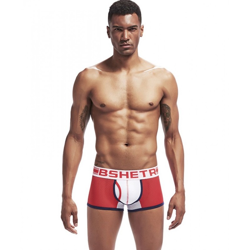• Мужские трусы боксеры Bshetr в сетку красного цвета