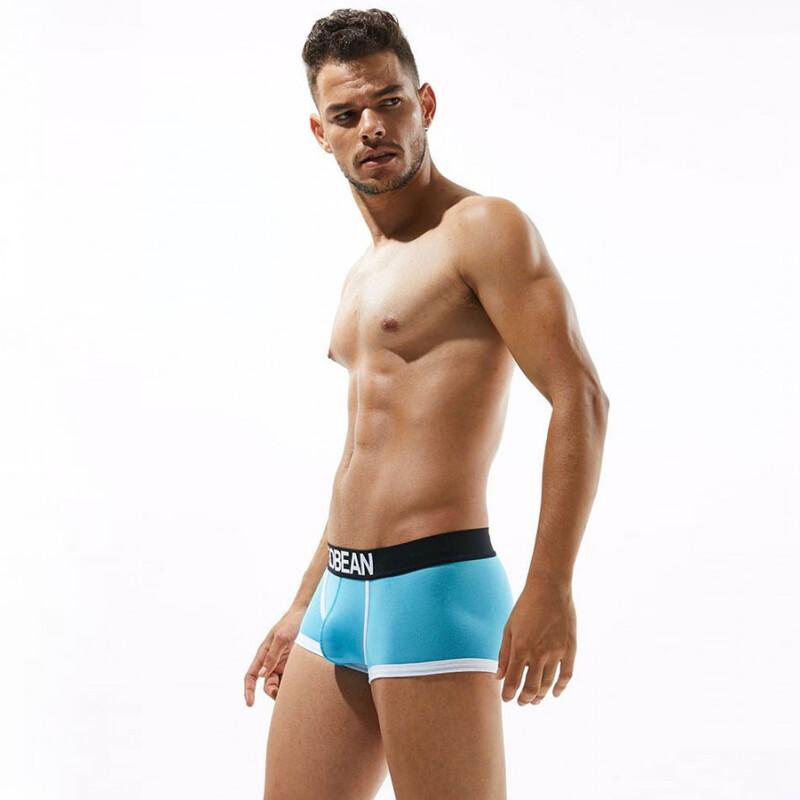 • Мужские трусы-боксеры Seobean с черным поясом. Цвет: голубой