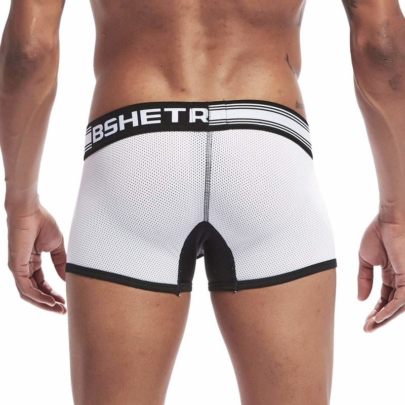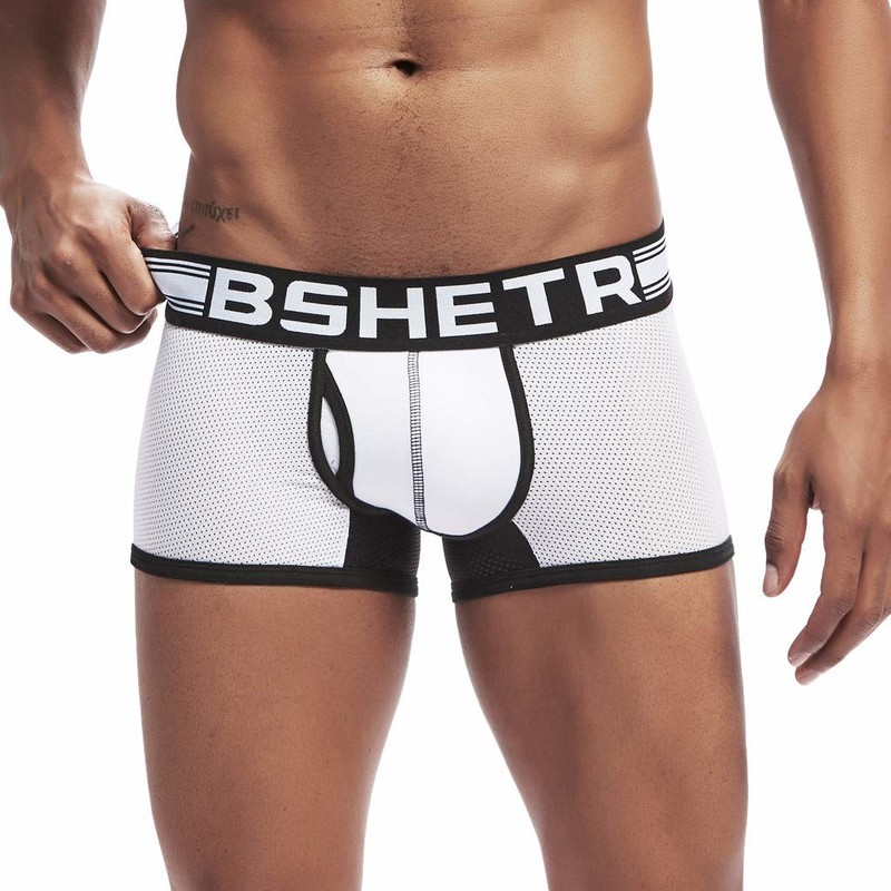 • Мужские трусы Bshetr в сетку белые с черным поясом