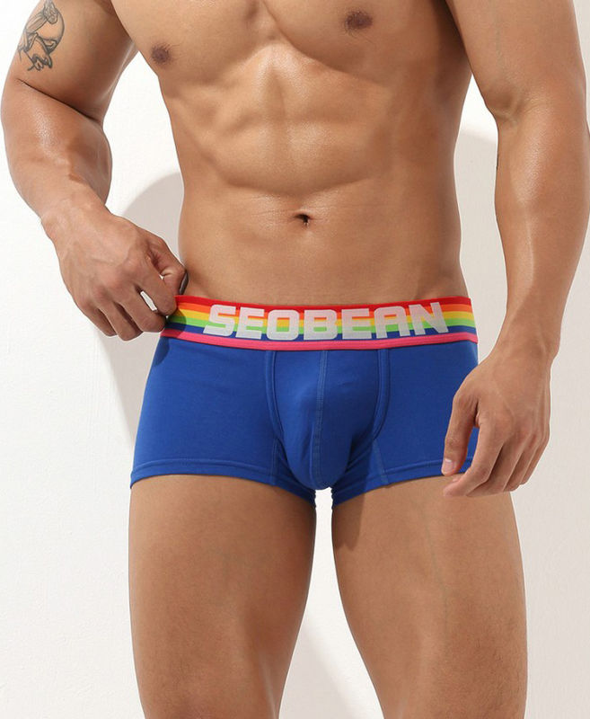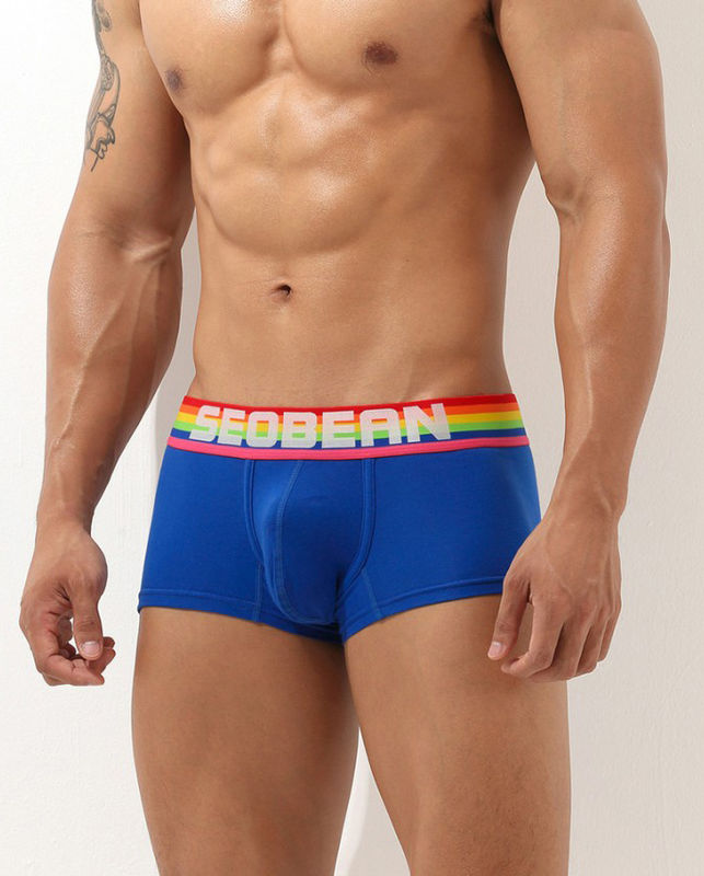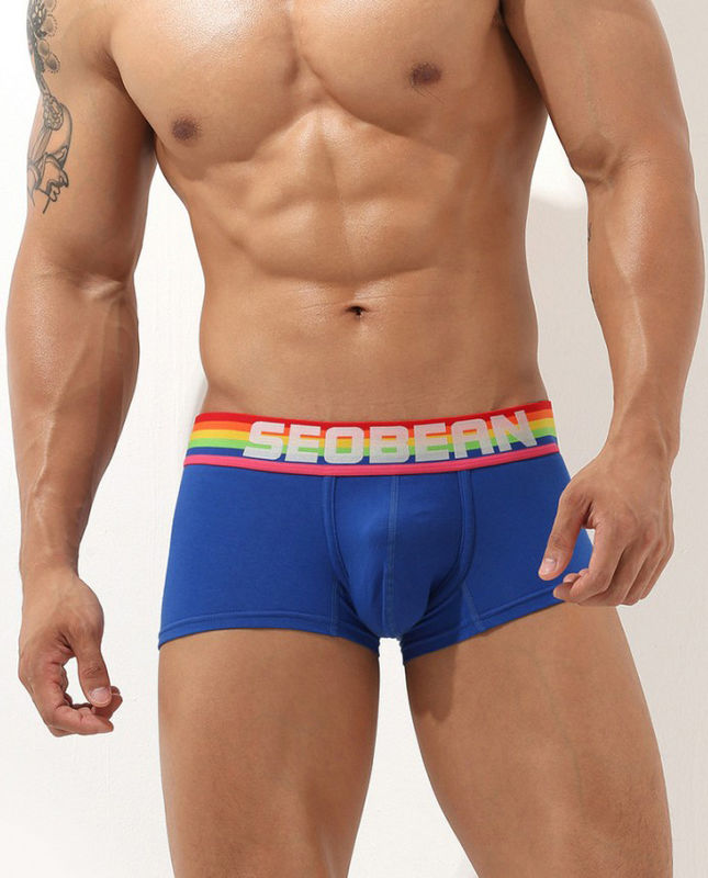 • Мужские трусы Seobean синего цвета с разноцветной резинкой