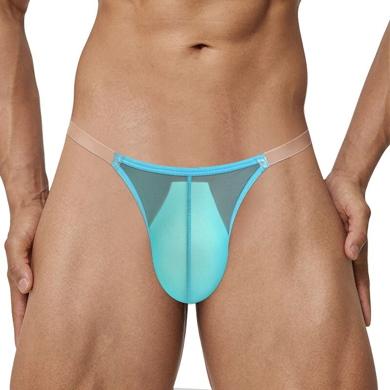 Лёгкие и сексуальные мужские трусы танга от бренда Adannu в освежающем голубом цвете подчёркивают фигуру и создают пикантный образ. Тонкий полупрозрачный материал (67% нейлон и 33% спандекс) мягко облегает тело, не сковывая движений. Заниженная посадка подчёркивает линию талии и бёдер, а открытая задняя часть добавляет дерзости. На фото использован маскировочный гульфик — он не входит в комплект. Модель не линяет, не теряет цвет, выполнена качественно и отлично подойдёт для уверенных мужчин, предпочитающих стильную и удобную нижнюю одежду.