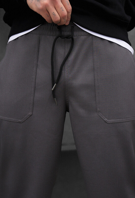 Серые брюки классического кроя – универсальная модель для ежедневного гардероба в любой сезон. Изготовлены из полиэстера с добавлением эластана, они обеспечивают комфорт, упругость и долговечность. Оснащены эластичным поясом на шнурке для идеальной посадки и четырьмя практичными накладными карманами. Лаконичный дизайн дополнен фирменной биркой, подчеркивающей современный стиль и функциональность.