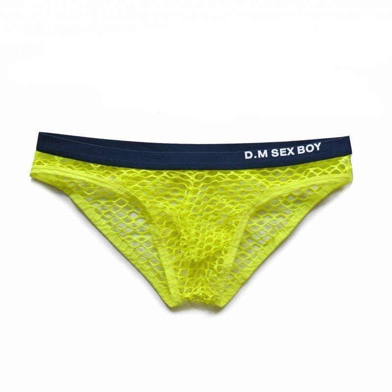 Мужское эротическое белье от бренда D.M. в ярком салатовом цвете — это настоящий взрыв энергии, свежести и позитива. Изготовленные из прозрачной крупной сетки, состоящей из полиэстера (90%) и спандекса (10%), они абсолютно всё просвечивают, создавая игривый, но очень сексуальный образ. Ткань мягко облегает тело, обеспечивая полную свободу движений и комфорт на протяжении всего дня. Заниженная посадка подчеркивает достоинства фигуры, а насыщенный салатовый оттенок привносит экстравагантности. Это белье уже сексуально само по себе, что делает его идеальным выбором для смелых и жизнерадостных мужчин, которые не боятся привлекать внимание и экспериментировать со стилем. Салатовые брифы — это способ выразить свою уникальность и добавить яркий акцент в интимный гардероб.