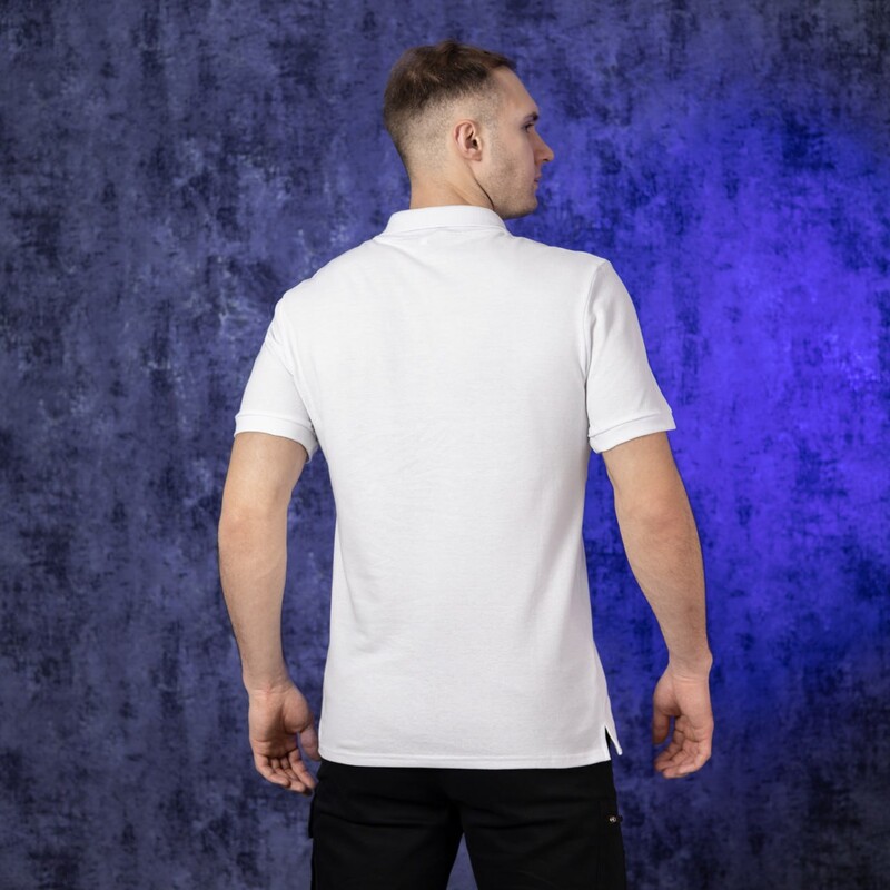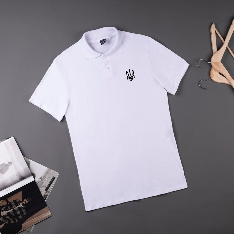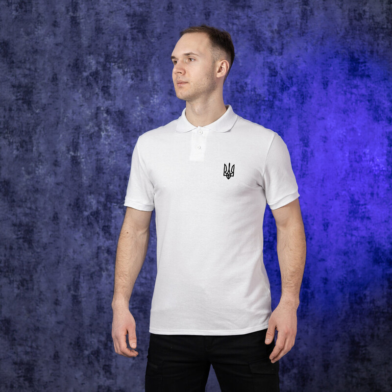 Представляем современное мужское поло от украинского производителя Pobedov. Это стильное белое поло с наклейкой "Герб Украины" — идеальный выбор для тех, кто ценит комфорт, качество и современный дизайн. Изготовленное из 100% хлопкового трикотажа лакоста, оно обеспечивает исключительную мягкость и воздухопроницаемость. V-образный вырез горловины и отложной воротник придают поло элегантный вид, а нагрудная планка на двух пуговицах добавляет классических деталей. Манжеты рукавов выполнены из основного материала футболки, обеспечивая единый стиль.