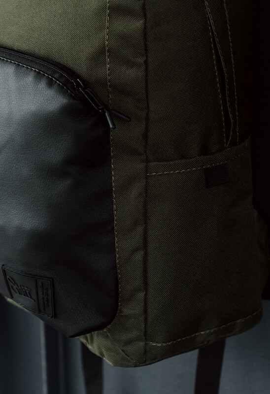 - внешнее отделение на молнии и два открытых кармана по бокам;
