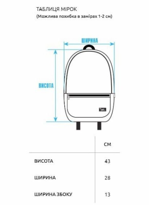 - размер: высота 43 см, ширина 28 см, ширина сбоку 13 см;