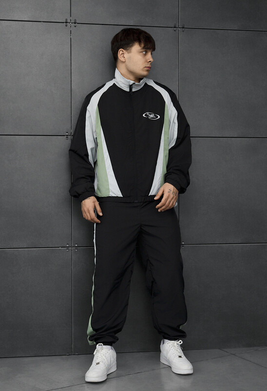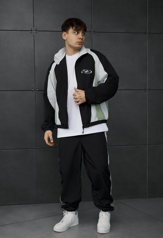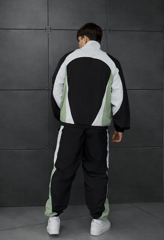 Мужской спортивный костюм в черном, зеленом и белом цветах – идеальный выбор для демисезона и лета. Выполнен из 100% полиэстера с сетчатой подкладкой, обеспечивает комфорт и вентиляцию. Куртка классического кроя с воротником стойкой, эластичными манжетами и ветрозащитной планкой защищает от ветра. Брюки с эластичным поясом и карманами на молнии гарантируют удобство. Стильный дизайн и практичность делают комплект отличным для активного отдыха.