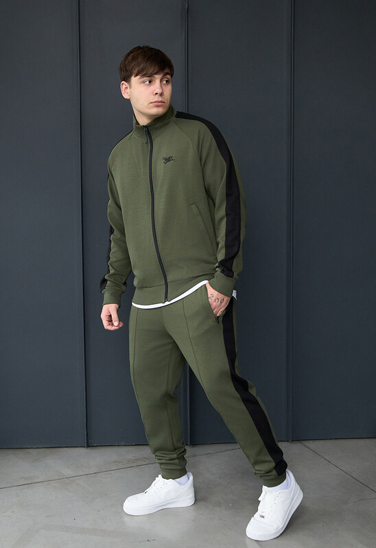 Спортивный костюм классического кроя с карманами на молнии и высоким воротником подарит ощущение комфорта в любой ситуации.