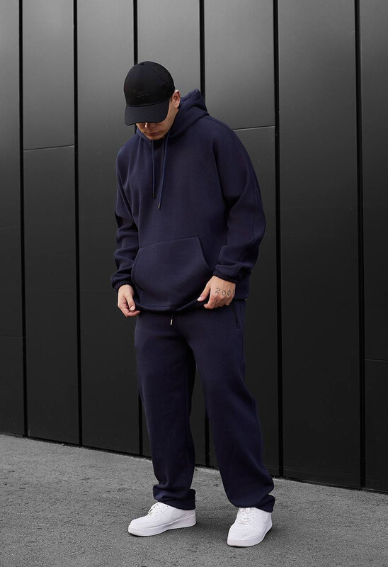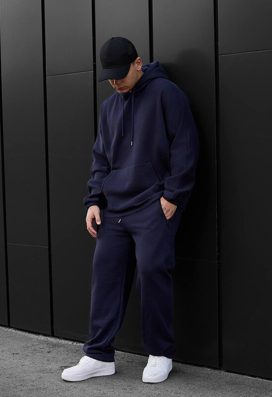 Утеплений спортивний костюм в посадці oversize в який входять об’ємне худі з регульованим низом та штани прямого вільного крою з кишенями на блискавках. Модель надійно зігріває у холодну пору да створює стильний образ.