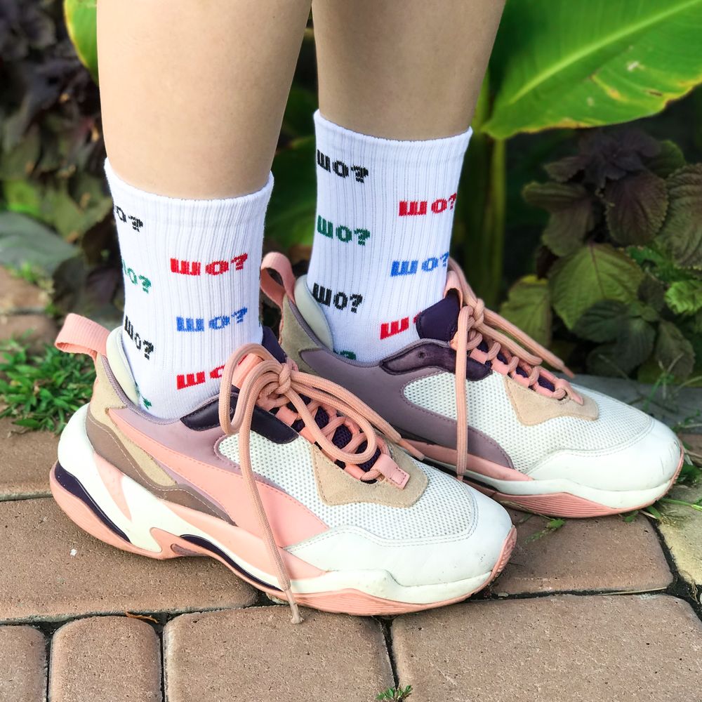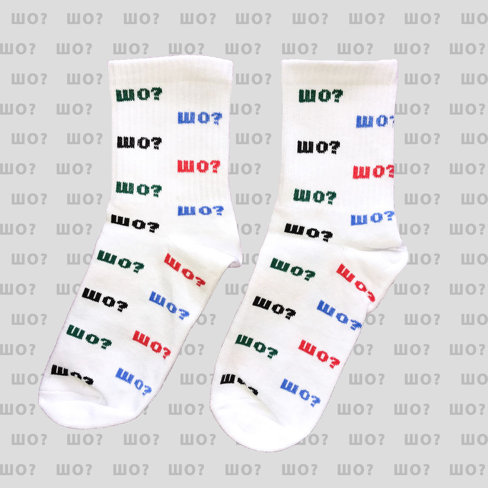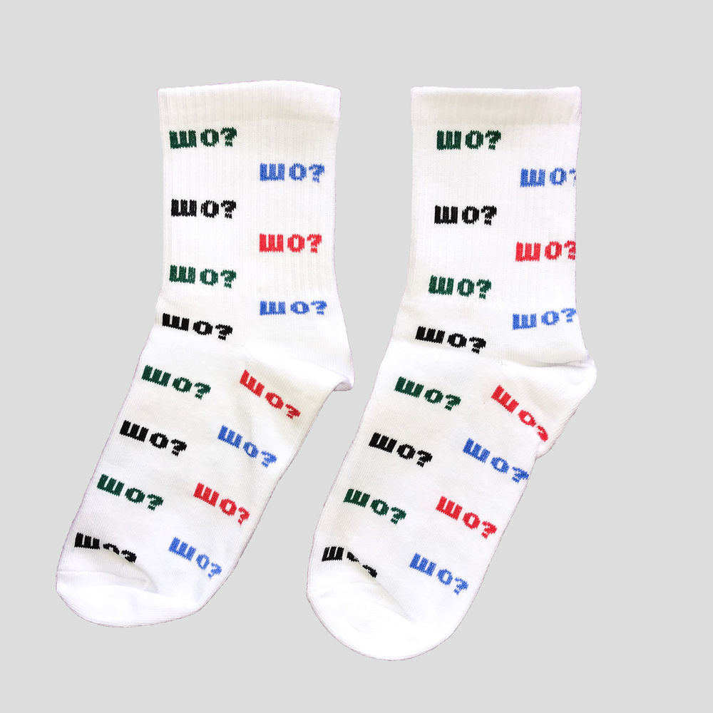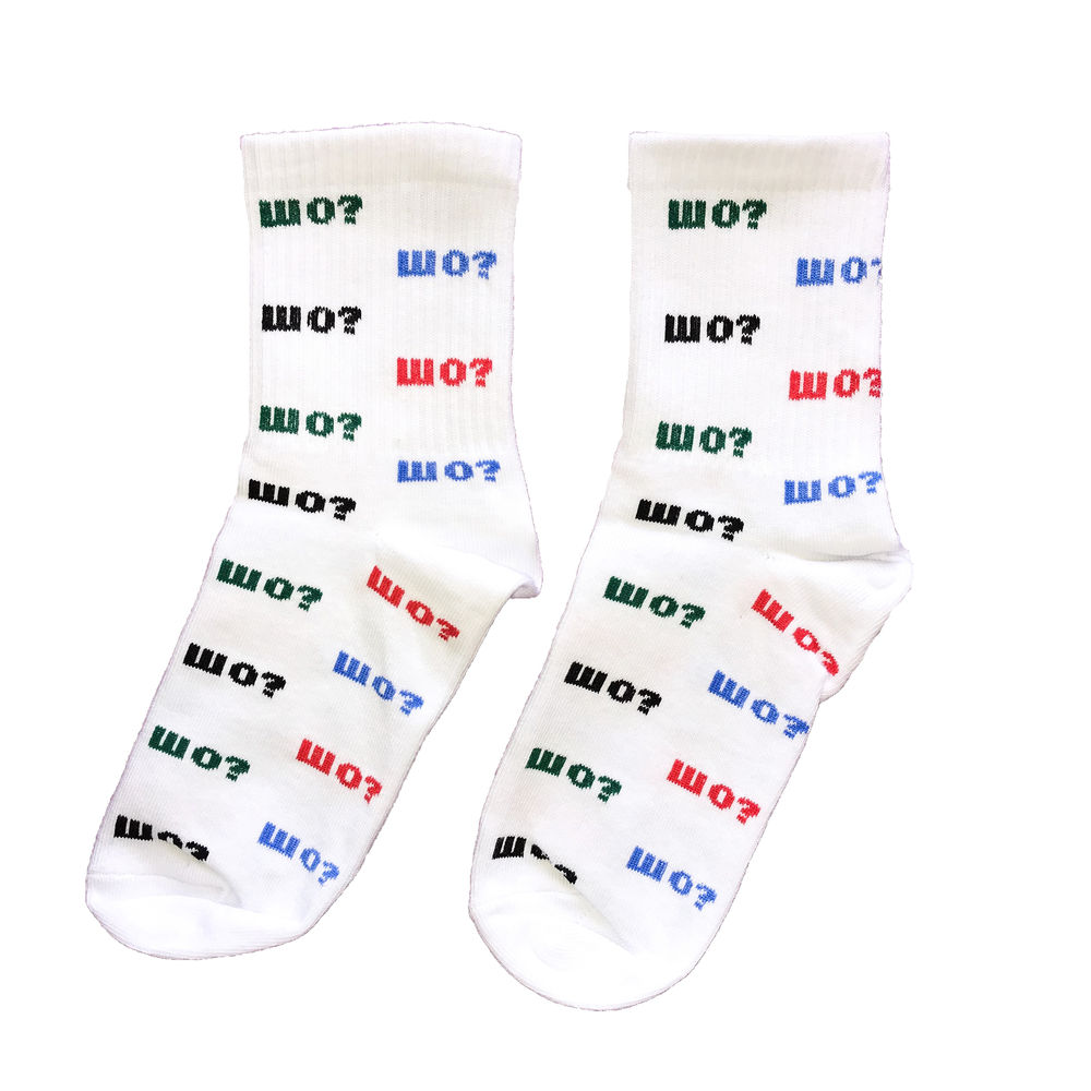 • Носки Sunny Focks белого цвета с надписью "Шо?"