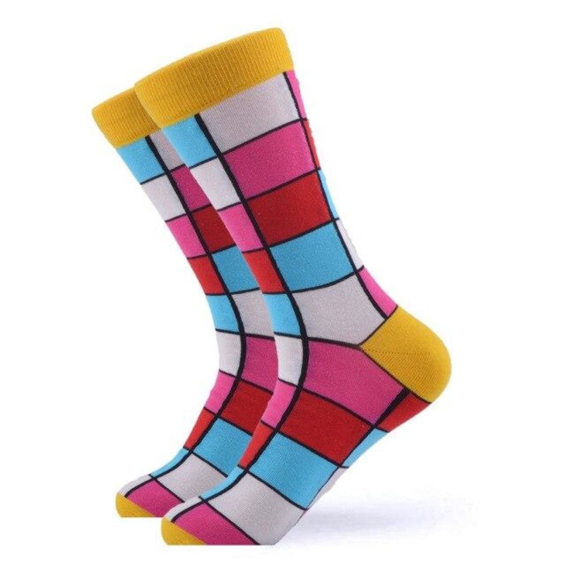 • Высокие носки Friendly Socks в клетку с желтыми пятками