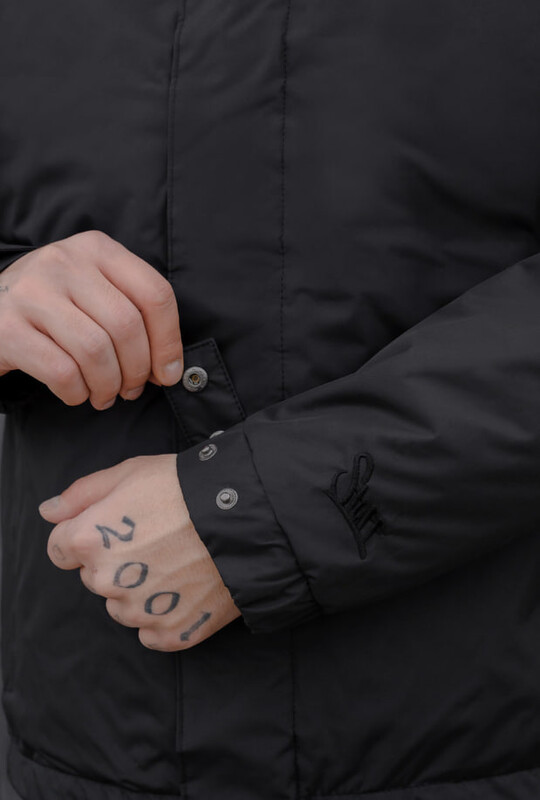 - якісна вишивка з логотипом бренду на лівому рукаві.