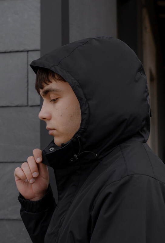 - ширина капюшона регулюється шнуром із пластиковими фіксаторами;