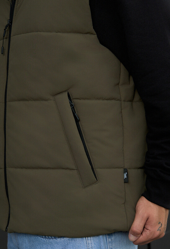 Утепленная жилетка – актуальная вещь для демисезонного периода, прекрасно сочетающаяся с любой одеждой. Прорезные карманы на молнии сохранят твои вещи в безопасности, а капюшон с регулируемым объемом и водоотталкивающий материал изделия защитят от ветра и мелкого дождя.