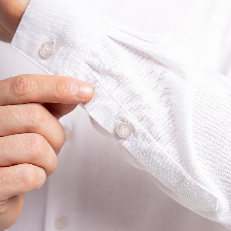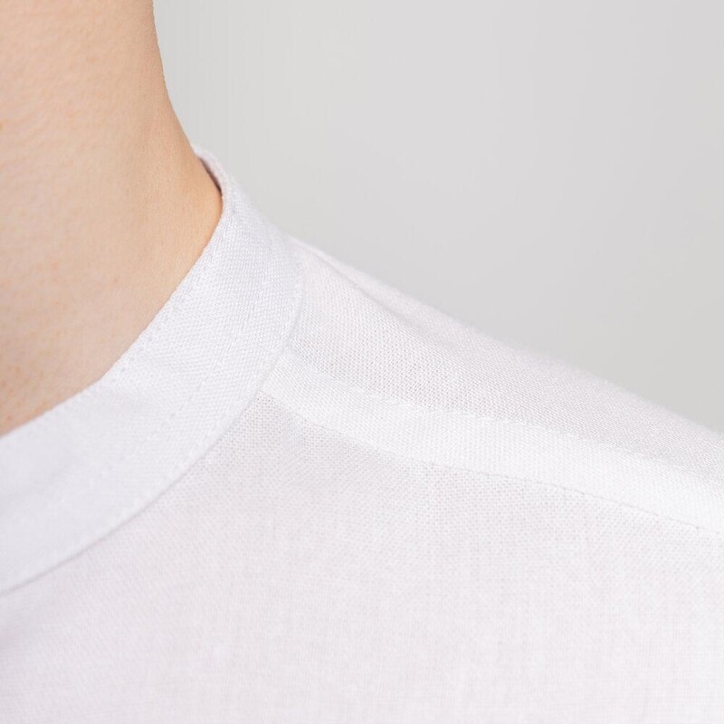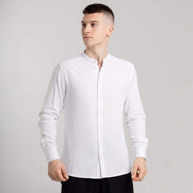 Белая рубашка Pobedov — это свежесть, чистота линий и максимальный комфорт. Изготовленная из натурального льна без стрейча, она особенно приятна к телу в жаркие дни. Прямой крой делает образ лёгким и расслабленным, а воротник-стойка придаёт модели благородный акцент. Застёжка на пуговицах добавляет удобства и подчёркивает минималистичный стиль. Манжеты на пуговицах легко регулируются — это делает рубашку универсальной и практичной. Белый цвет — классика, которая освежает образ и отлично сочетается с любым низом. Идеальна для лета и весны.