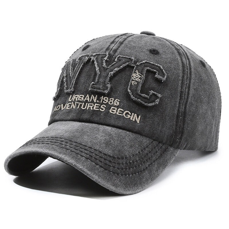 • Однотонная серая бейсболка от бренда Narason с нашивкой NYC