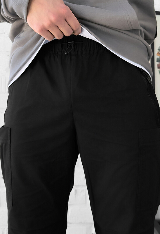 - пояс и низ штанин на эластичных стяжках с пластиковыми фиксаторами;