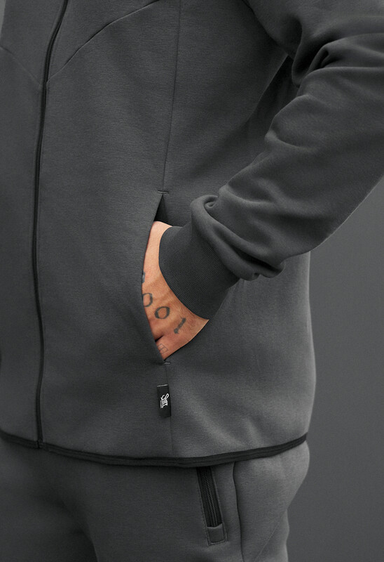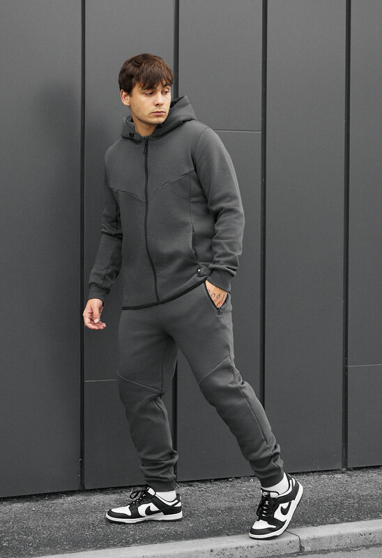 Серый спортивный костюм — стильное сочетание практичности и комфорта для прохладных дней. Плотный микрофлис внутри мягко согревает, создавая уют даже в холодную погоду. Классический крой подчеркивает фигуру, сохраняя свободу движений. Эластичные манжеты и пояс обеспечивают идеальную посадку, а регулируемый капюшон защищает от ветра. Два удобных кармана на молнии добавляют функциональности, а лаконичный серый оттенок придает образу сдержанную элегантность и универсальность, подходя под любой стиль.