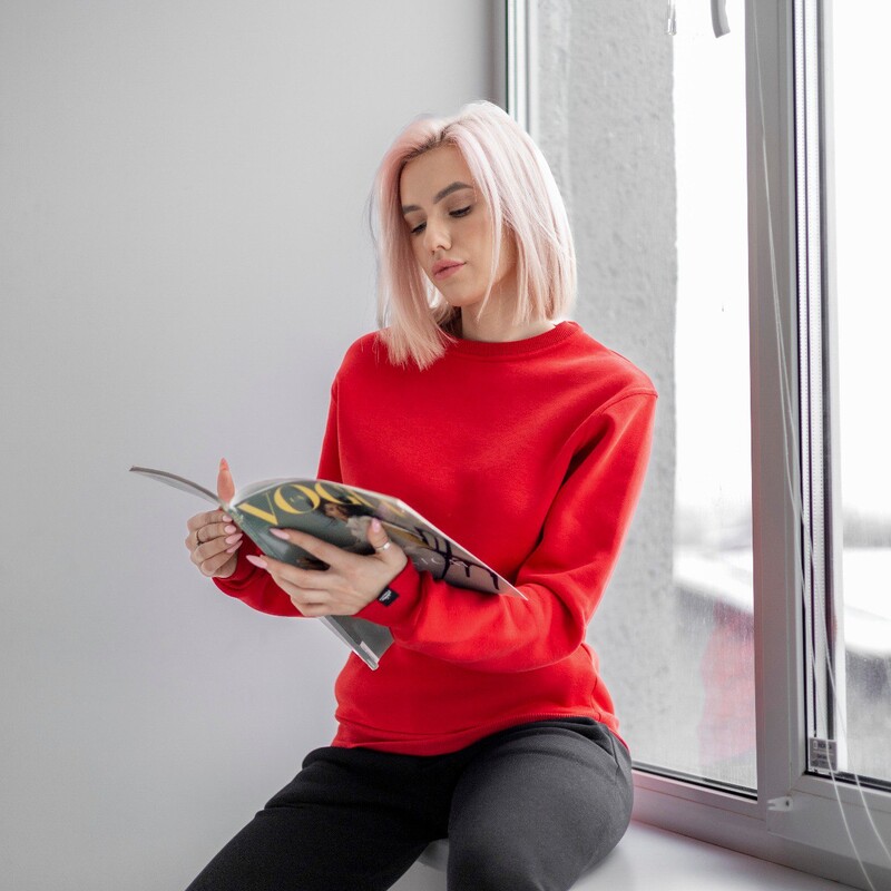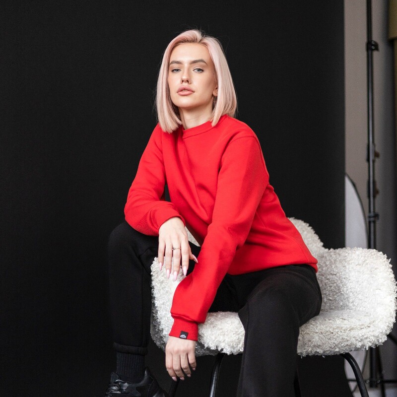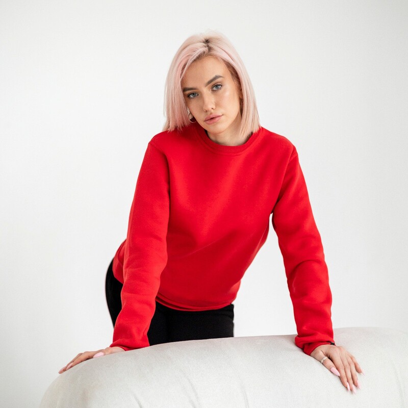 • Однотонный зимний свитшот Pobedov 007 красного цвета