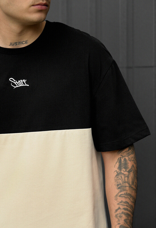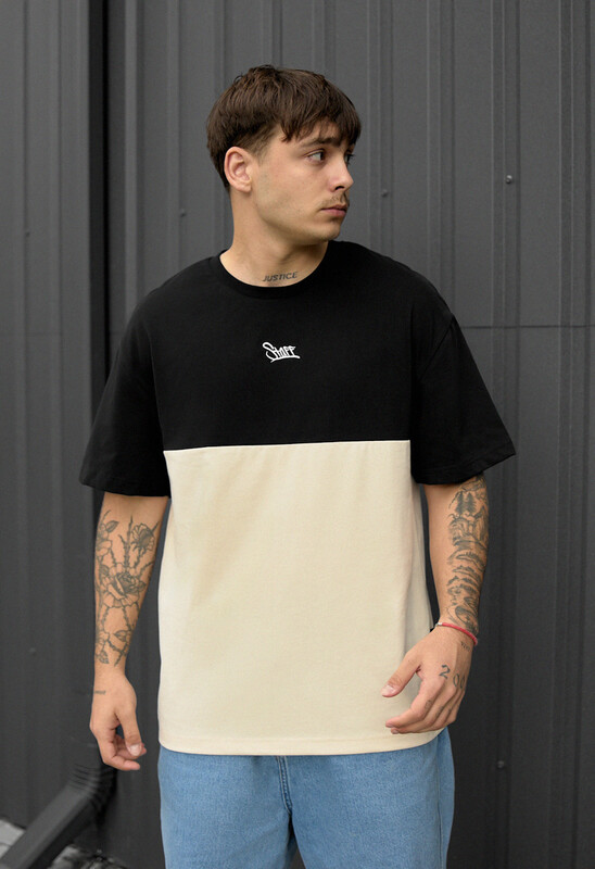 Двухцветная футболка oversize с вышитым логотипом бренда на груди.