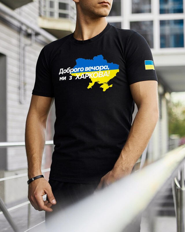 Фото - Патриотическая черная футболка "Доброго вечора ми з ХАРКОВА" - Men box