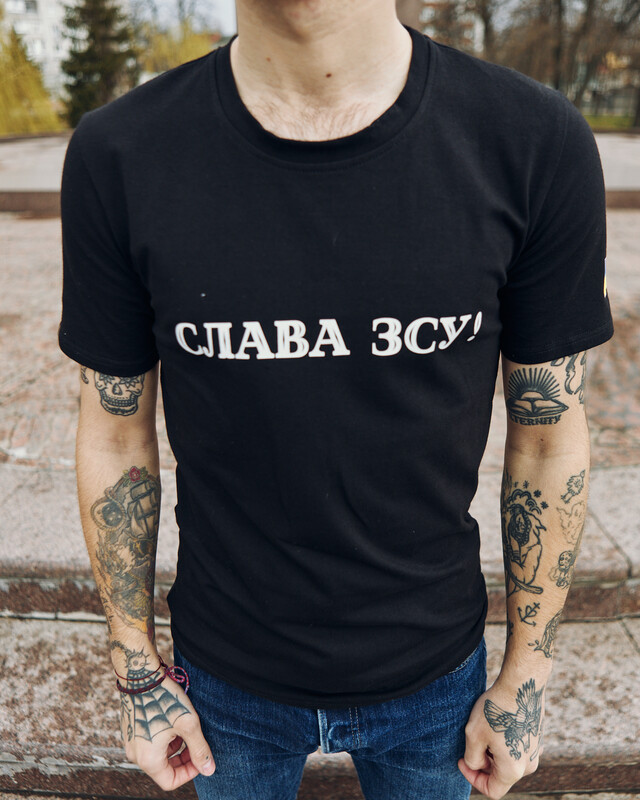 Эта футболка — твой способ выразить уважение и гордость. Футболка от украинского бренда Intruder несёт на себе сильный и значимый принт "Слава ЗСУ", выполненный методом долговечной накатки, который не выгорает и не теряет своей чёткости. Созданная из высококачественного турецкого кулира, состоящего из 90% хлопка и 10% эластана, она ощущается невероятно мягкой и приятной к телу, обеспечивая комфорт и свободу движений на весь день. Прямой крой, короткий рукав и классический круглый вырез горловины делают её универсальной для любого стиля. Отличное фабричное качество гарантирует, что эта футболка прослужит долго, сохраняя свой безупречный вид.