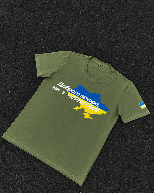 • Патриотическая хаки футболка "Доброго вечора ми з ЧЕРНІГОВА"