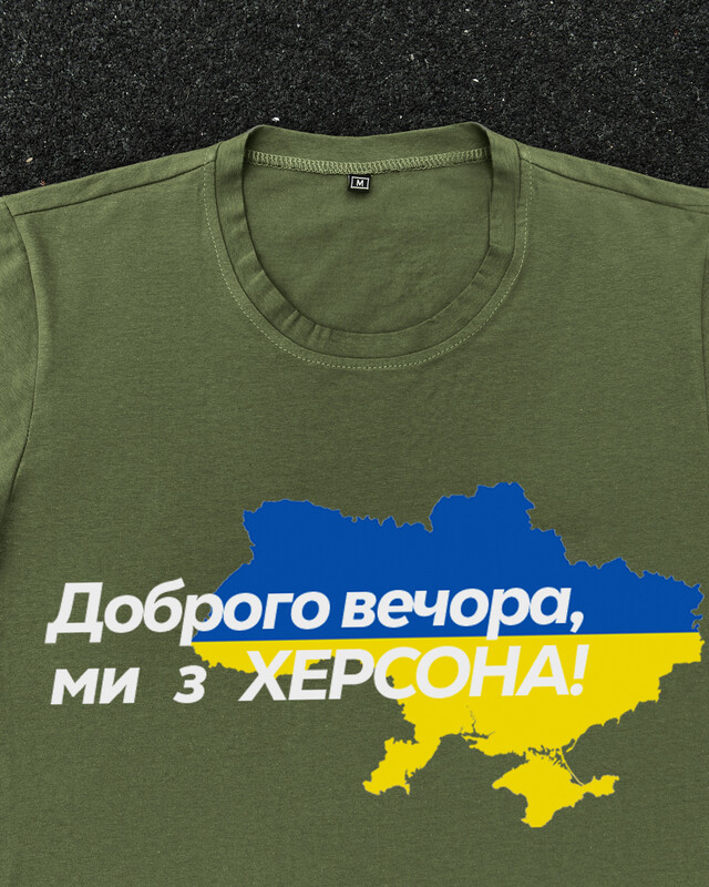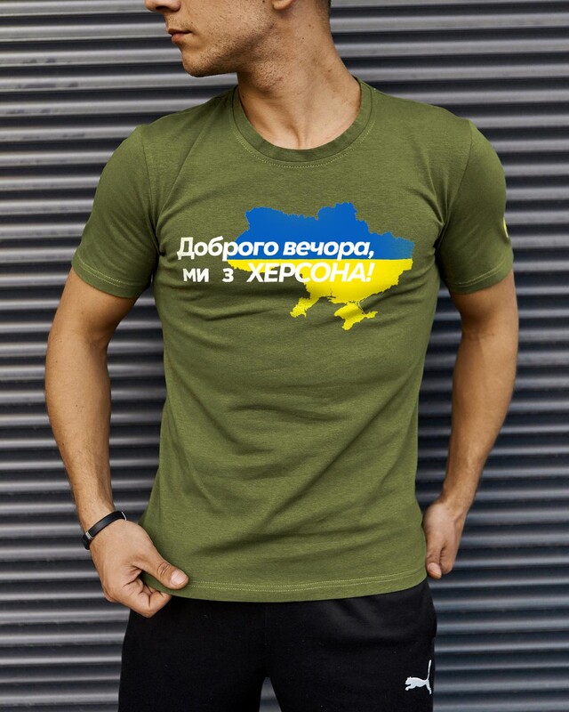 • Патриотическая хаки футболка "Доброго вечора ми з ХЕРСОНА"
