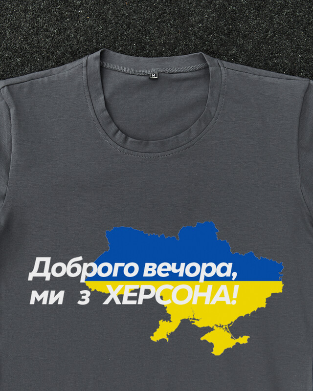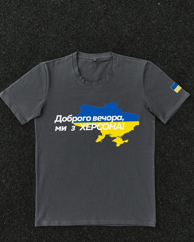 • Патриотическая темно-серая футболка "Доброго вечора ми з ХЕРСОНА"