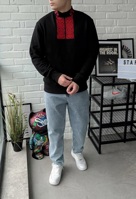 Стильний світшот чудово впишеться у твій гардероб, а ексклюзивний принт на шиї та грудях допоможе виділитися із натовпу.