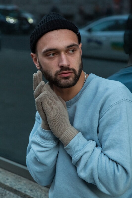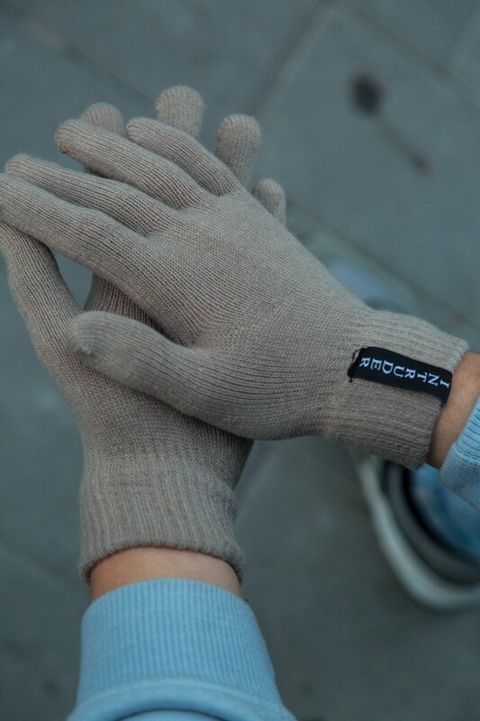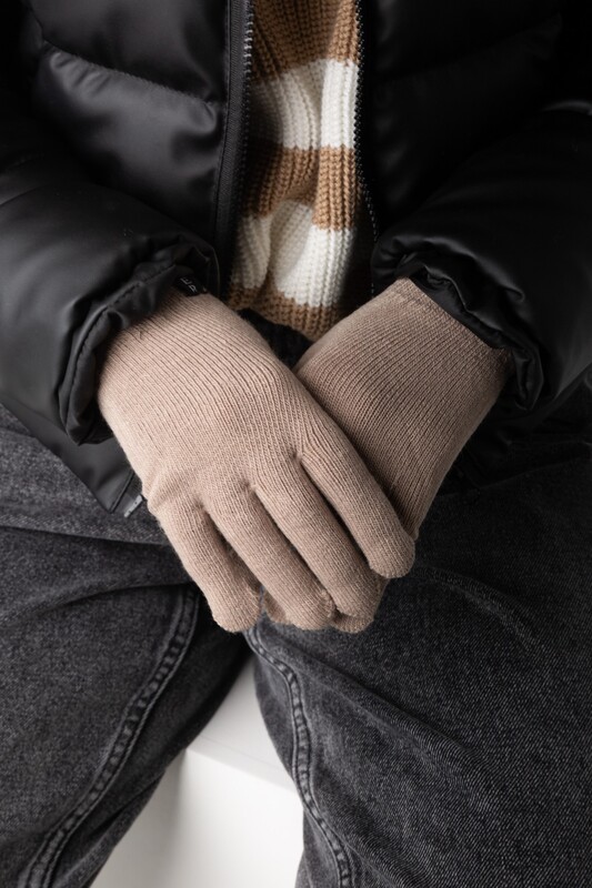 • Перчатки вязаные Intruder бежевые с фирменной нашивкой