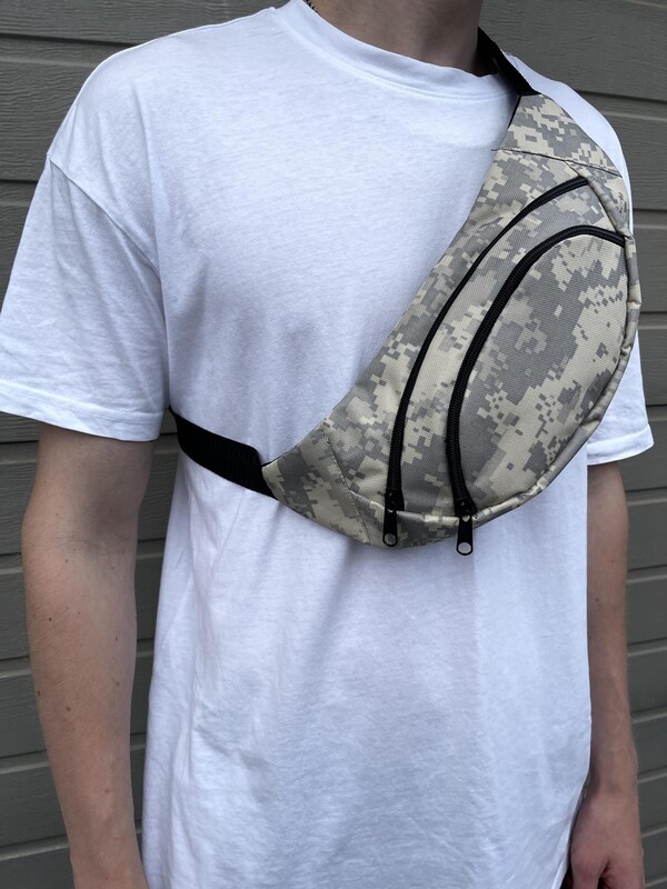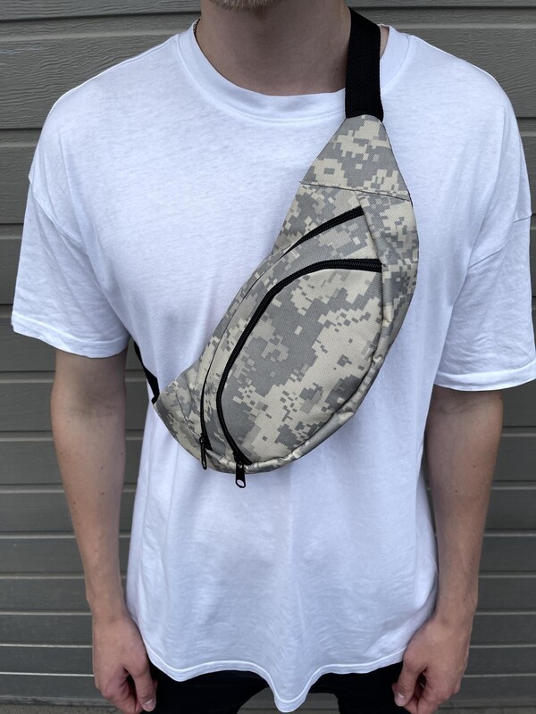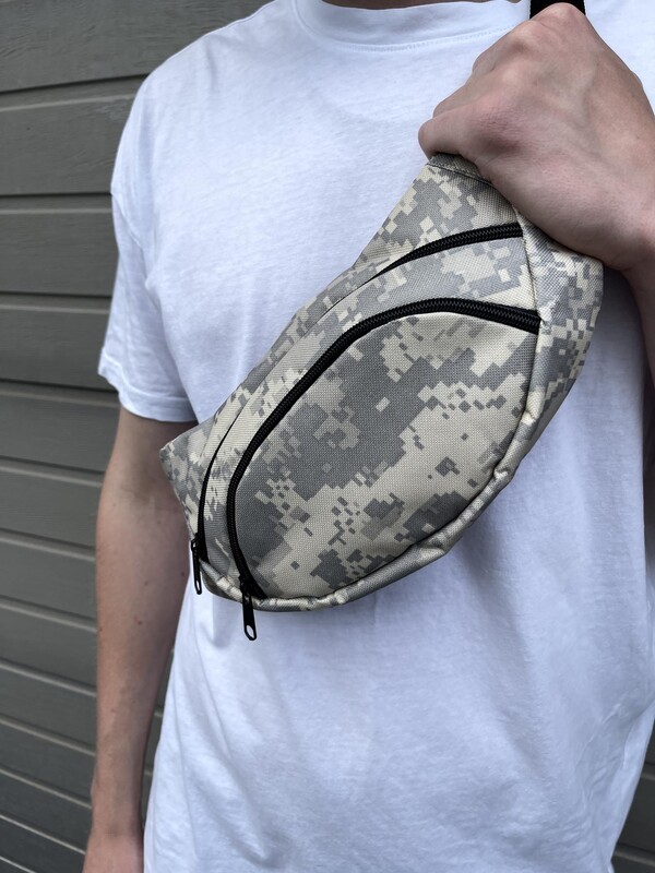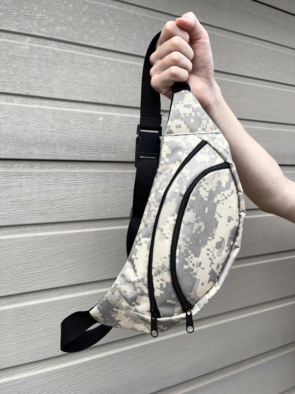 Камуфляжная поясная сумка с белым лого