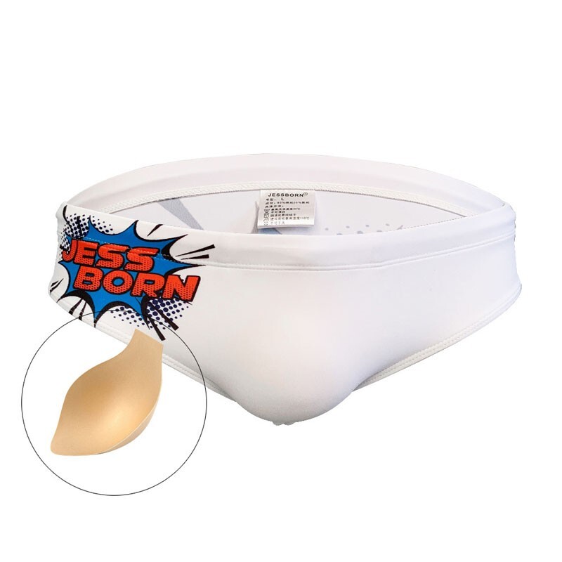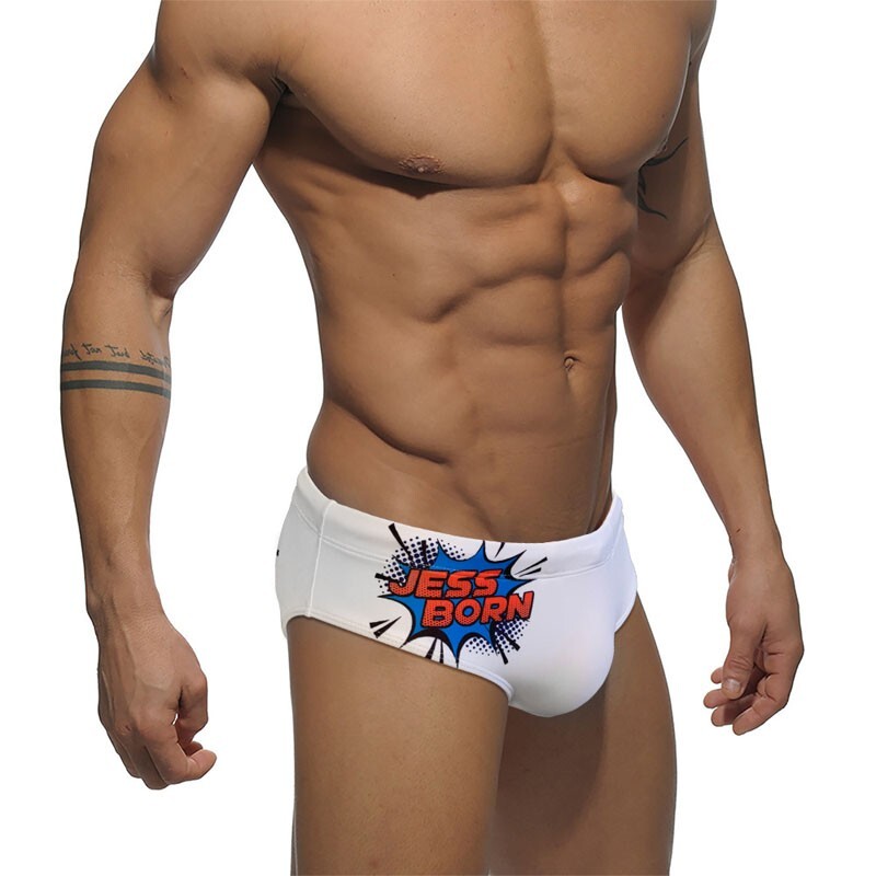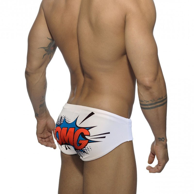 • Плавательные брифы от бренда UXH белые с ярким принтом